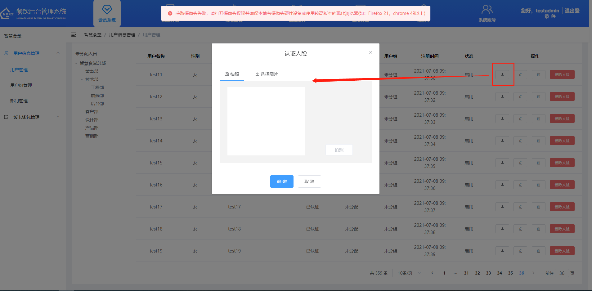 ④點(diǎn)擊右側(cè)操作人臉小圖標(biāo)進(jìn)行人臉認(rèn)證,方便系統(tǒng)使用人臉識(shí)別功能,可進(jìn)行批量注冊(cè)人臉;