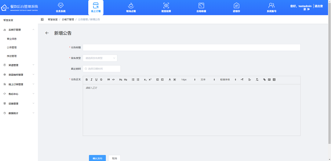 2) 如何設(shè)置發(fā)布食堂公告到云餐廳上