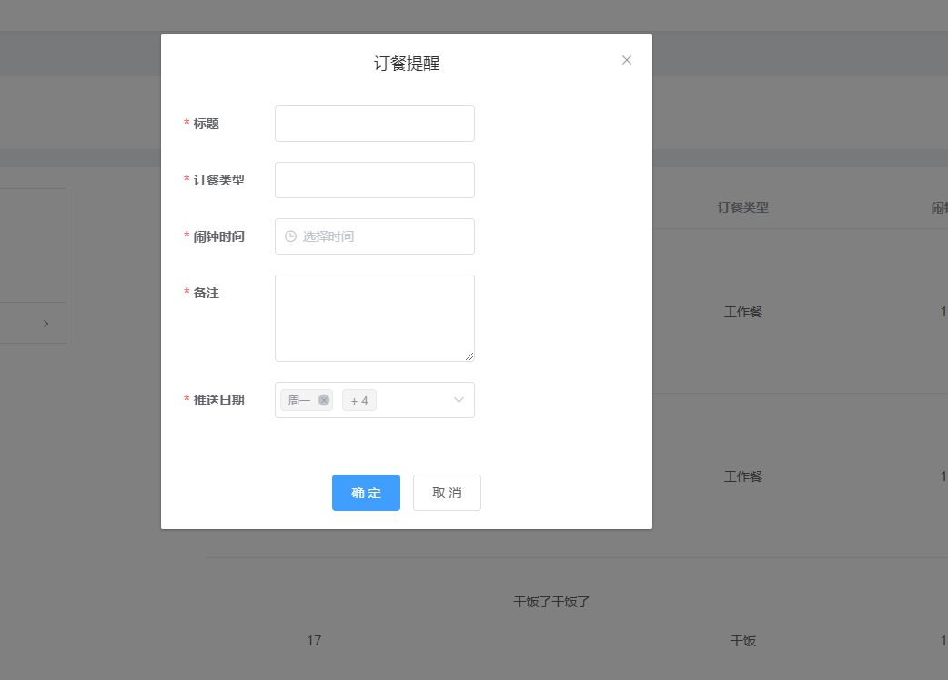 ①點擊“添加”按鈕添加標題、訂餐、類型、鬧鐘時間、設(shè)置推送日期等信息;