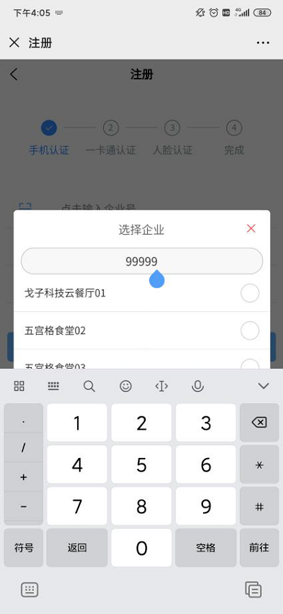 ①輸入企業(yè)號(hào),選擇要消費(fèi)的食堂
