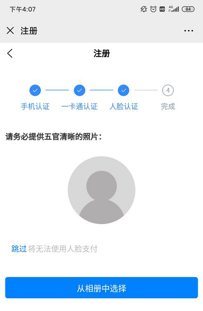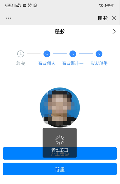 ③點(diǎn)擊“上傳”按鈕,人臉將綁定一卡通賬號(hào),點(diǎn)擊“重新”則重選照片