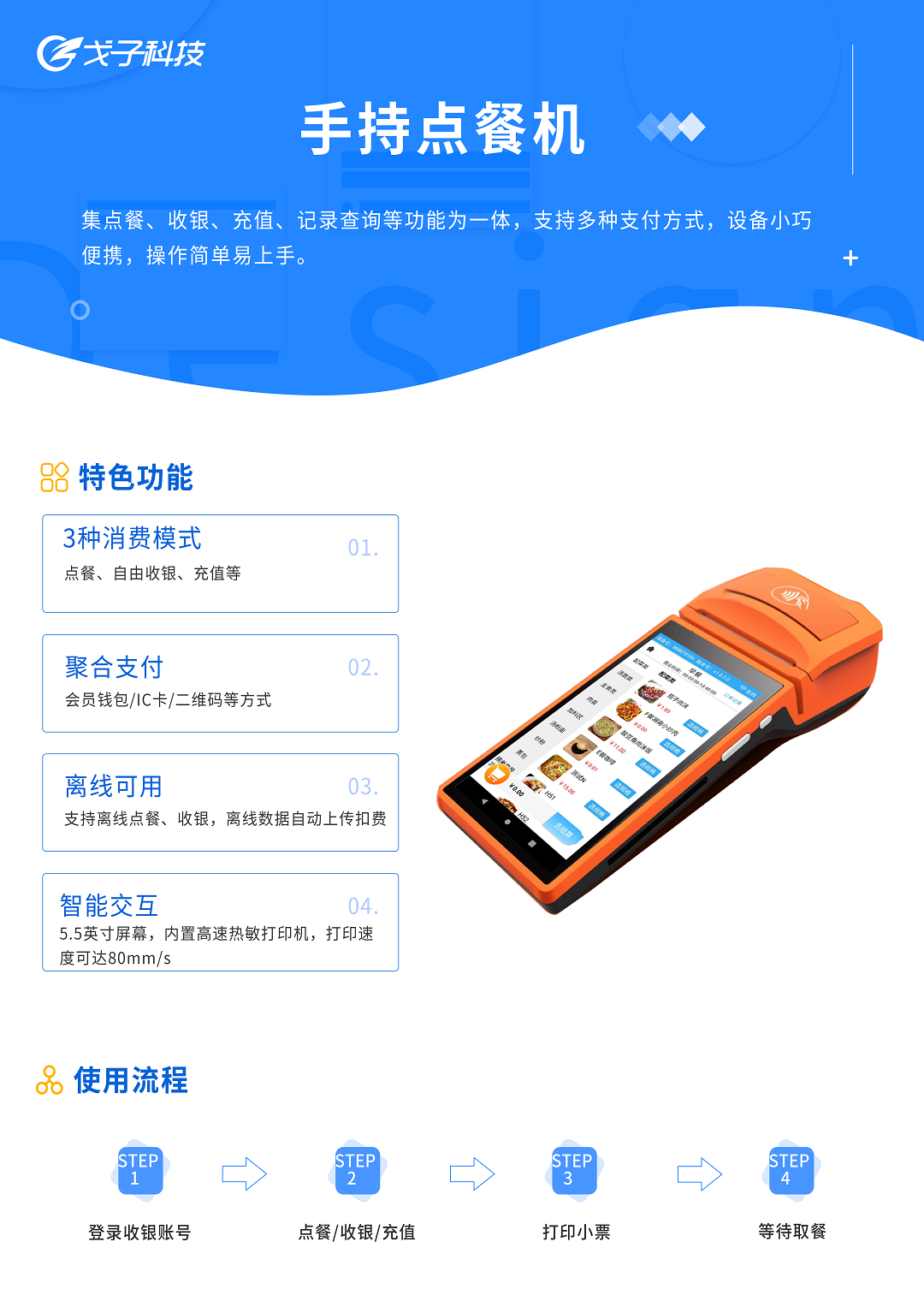 手持機適用于餐飲,零售,商超,生鮮,日化等收銀場景,提供軟硬一體化產(chǎn)品支持預訂,排隊叫號,點菜收銀,會員營銷,報表等服務!